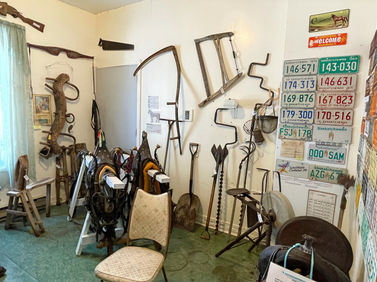 But it's not just license plates on display here; visitors can also see an oxen yoke, a grinding stone, and a range of harnesses and other tools and equipment. These items offer a glimpse into the daily lives of our ancestors, highlighting the skills and techniques that were necessary for survival in the past.